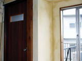 | 今回のリフォームで、クロスを貼るときに問題になったのが、この出窓の繊維壁でした。 一昔前は、このように繊維(綿のようなもの)を、左官壁に塗りつけて温かみを出すのが、はやったときもあったのですが、時間と共に磨耗して、汚ればかりが目立つようになっていました。 この繊維は、のりで簡単につけてあるため、霧吹きなどで水を吹きかければ剥がすことは出来ます。 しかし、そうすると繊維が飛びちり、とても埃っぽくなってしまうのです。ですから、今回は剥がし材(海草で出来ています)を使い、がりがりと剥がしていきました。 そのあと、総パテをし、丁寧に壁を平らにならしてから、 クロスを貼っていきました。 |