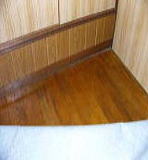 | お客様は、はじめフローリングの貼り替えをご希望されていましたが、お部屋が2Fなため、一度剥がして、貼り替えるとなると、かなりの大工事になってしまうので、今回は、新しいフローリングを、上に貼ることにしました。 そうなると、フローリング一枚分、床が高くなってしまうので、入り口の建具の、敷居部分の調節を、はじめに行いました。 |